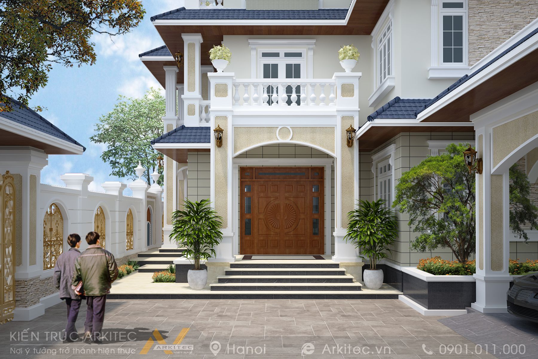 Cổng chính, hàng rào cũng là yếu tố quan trọng giúp ngôi nhà nổi bật hơn. Các mẫu biệt thự thường xây dựng nhiều tầng, vì vậy chiều cao cổng, tường rào cần tính toán phù hợp, tỷ lệ hài hòa tổng thể căn nhà.